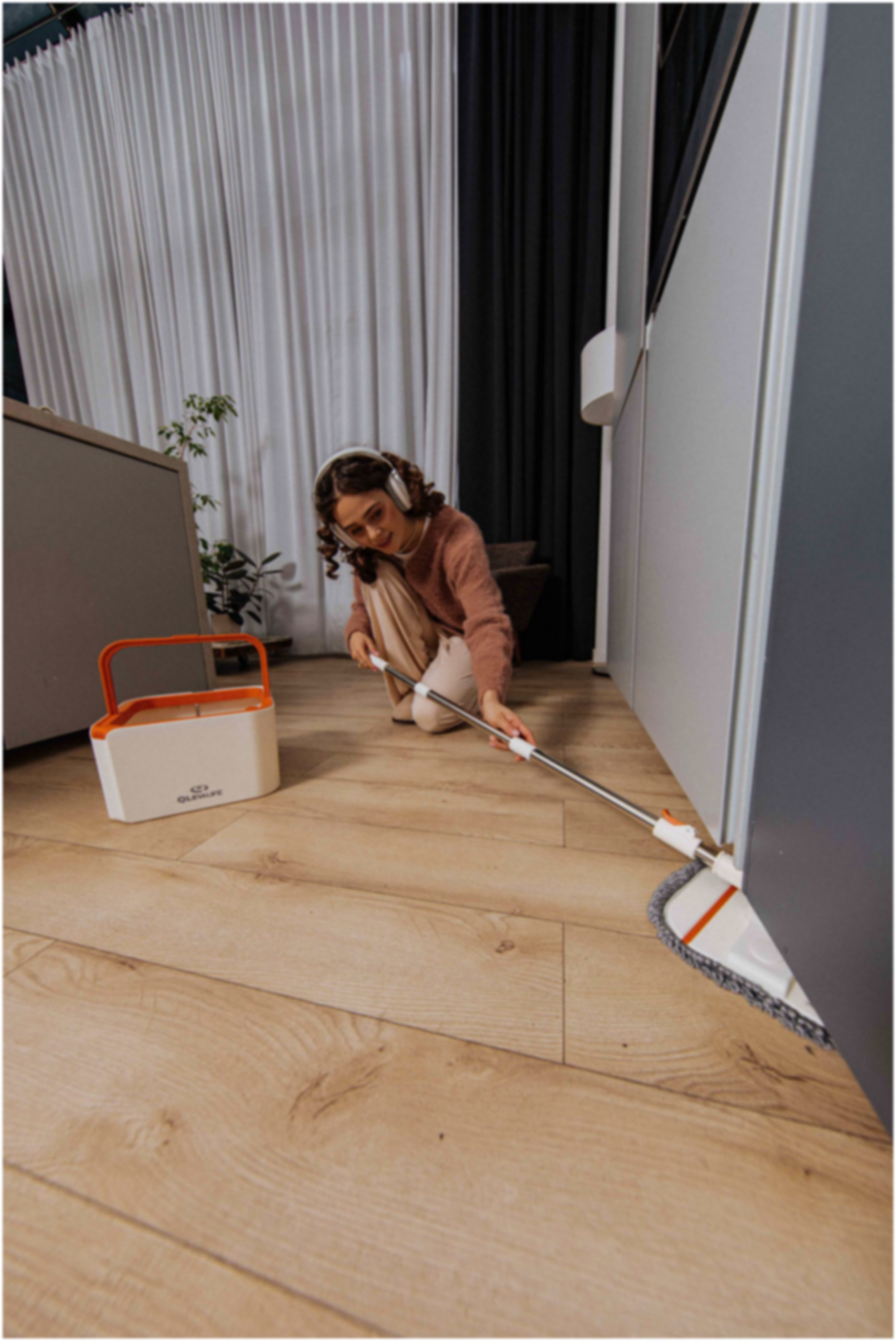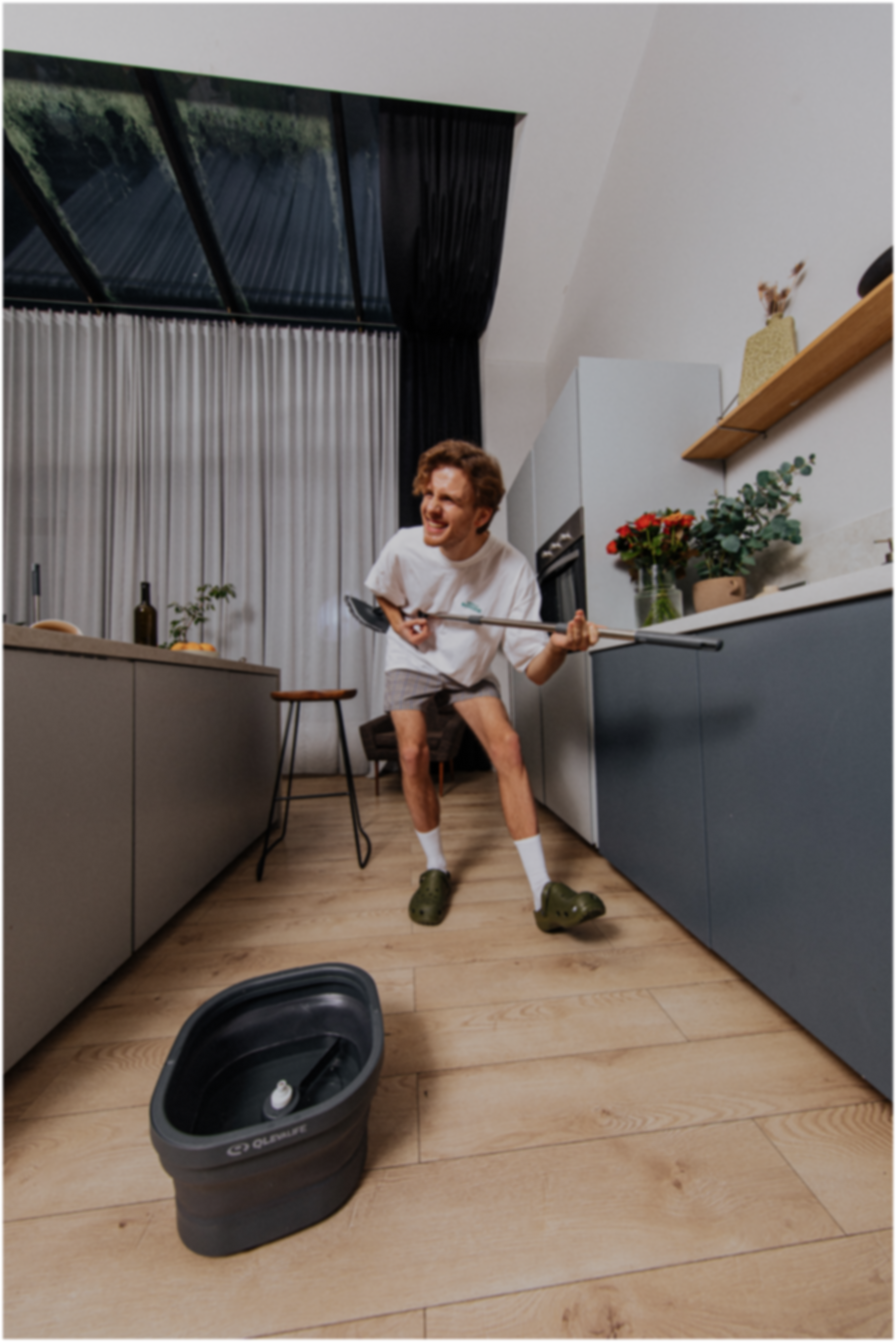 Умная швабра Qleva моет только чистой водой, бережёт ваши руки, спину и время.
